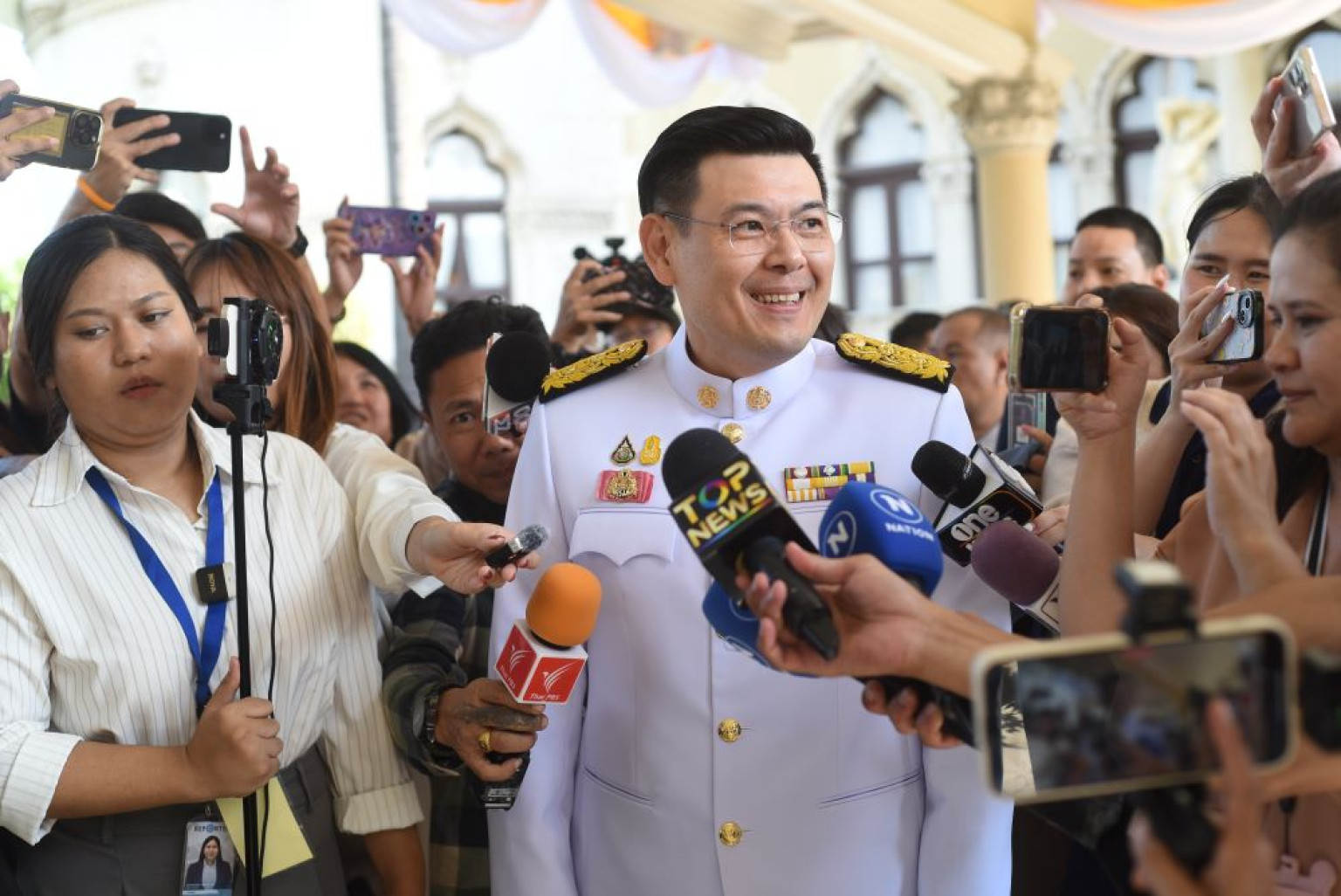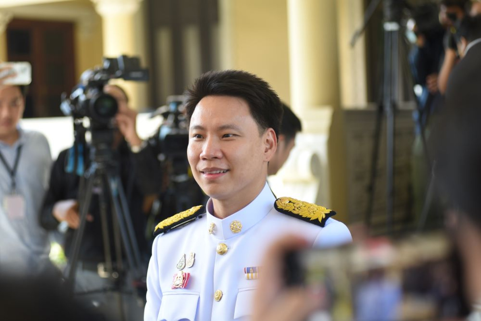 โดยบรรยากาศเป็นไปอย่างคึกคัก นายเสริมศักดิ์ พงษ์พานิช รมว.การท่องเที่ยวและกีฬา เดินทางถึงทำเนียบรัฐบาลเป็นคนแรกในเวลา 14.20 น.เพื่อถ่ายภาพ ทำประวัติ และทำบัตรประจำตัวรัฐมนตรีใหม่ ที่ห้องสีเหลือง ภายในตึกสันติไมตรี หลังนอก