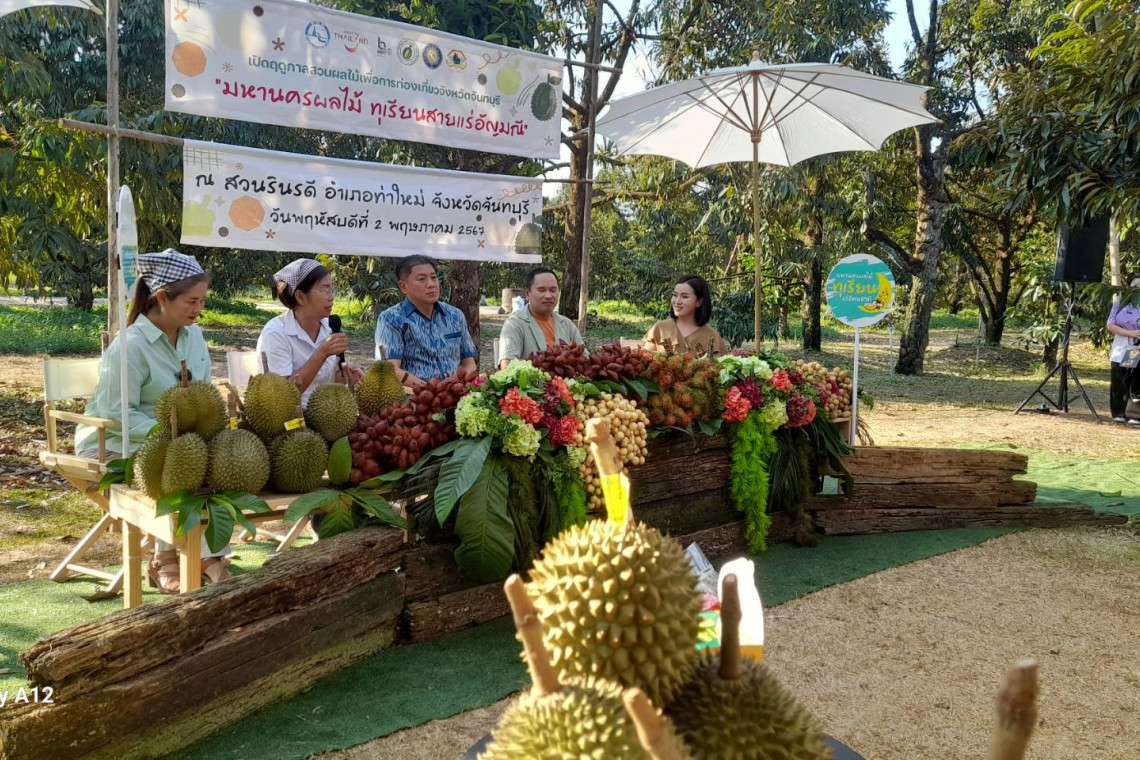 “มหานครผลไม้ ทุเรียนสายแร่อัญมณี” เพื่อให้นักท่องเที่ยวเข้าเยี่ยมชมและชิมผลไม้สด จากสวน สร้างภาพลักษณ์ที่ดีให้กับทุเรียนและผลไม้เมืองจันท์ ตั้งแต่เดือนพฤษภาคม - กรกฎาคม