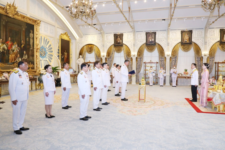 ในโอกาสนี้ นายพรหมินทร์ เลิศสุริย์เดช เลขาธิการนายกรัฐมนตรี และนางณัฐฏ์จารี อนันตศิลป์ เลขาธิการคณะรัฐมนตรี ร่วมเข้าเฝ้าทูลละอองธุลีพระบาทด้วย
