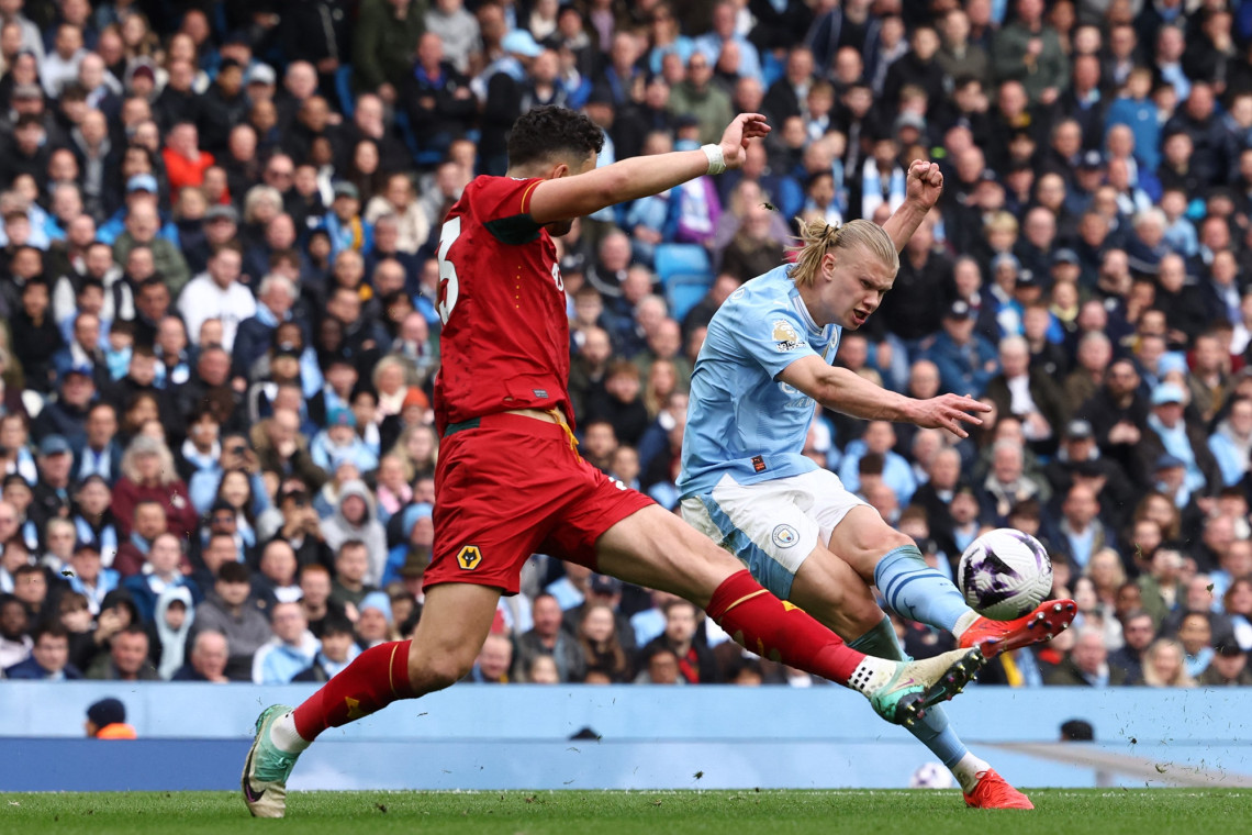 ที่สนาม เอติฮัด สเตเดี้ยม ประเทศอังกฤษ ในการแข่งขันฟุตบอลพรีเมียร์ลีก ฤดูกาล 2023-2024 คืนวันที่ 4 พ.ค.67 ระหว่างทีม "แมนเชสเตอร์ ซิตี้" พบกับทีม "วูลฟ์ส" เริ่มเกมการแข่งขัน นาทีที่ 12 แมนซิตี้ นำ 1-0 จากจุดโทษเข้า จังหวะที่บอลหลุดเข้าทาง กวาร์ดิโอล ทางซ้ายในกรอบได้ยิงข้ามคานแต่ก็โดน เอท-นูรี ปะทะเข้าไปด้วยสุดท้ายกรรมการเลือกเป่าเป็นจุดโทษ ฮาลันด์ รับหน้าที่จัดการให้ก็ไม่พลาด