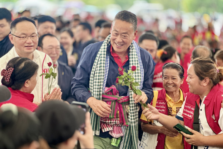 จากนั้นได้มีการเปิดเวทีของรัฐบาล โดยเวลา 11.44 น. นายกฯ เดินทางถึงศูนย์ประสานงานพรรคเพื่อไทย อ.พยัคฆภูมิพิสัย จ.มหาสารคาม พรรคเพื่อไทย โดยสวมใส่เสื้อสีแดง ซึ่งทันที่นายกฯ เดินทางมาถึงได้ทักทายประชาชน มีประชาชนได้มอบผ้าขาวม้าและดอกกุหลาบสีแดงให้กับนายกฯด้วย