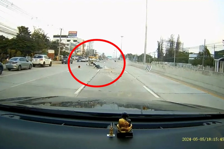 โดยกล้องหน้ารถ ผู้ที่ขับตามมาสามารถบันทึกภาพขณะชนไว้ได้ชัดเจน พบว่า ฝรั่งโปแลนด์ ขี่รถ จยย. มาตามถนนด้วยความเร็ว ก่อนที่รถ จยย.พ่วงข้าง กำลังจะไปขายโรตี ได้เลี้ยวตัดหน้าเพื่อไปยูเทิรน์ด้านหน้า ทำให้ชนเข้าอย่างจัง คนและรถ จยย.กระเด็นไปคนละทิศละทาง