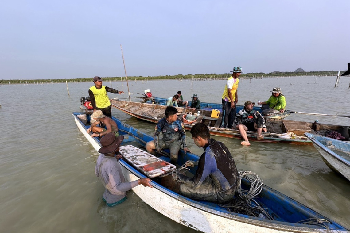 ต่อมาเจ้าหน้าที่กู้ภัยร่วมกับชาวบ้าน นำเรือท้องแบนออกไปรับแต่ก็เข้าไม่ถึงที่เกิดเหตุเพราะน้ำลดมาก โดยชาวบ้านกับกู้ภัยใช้วิธีเอากระดานกระดก ออกไปลากมาทีละคนระยะทาง300 เมตรนักท่องเที่ยวชุดแรกออกมายังจุดที่เรือจอดรอช่วยออกมาได้ 3 คน และกลับไปรับที่เหลืออีก 5 คนทั้งหมดปลอดภัยยิ้มแย้มขอบคุณทุกฝ่ายให้ความช่วยเหลือด้วยความประทับใจโดยไม่คาดคิดว่าจะมาติดโคลน