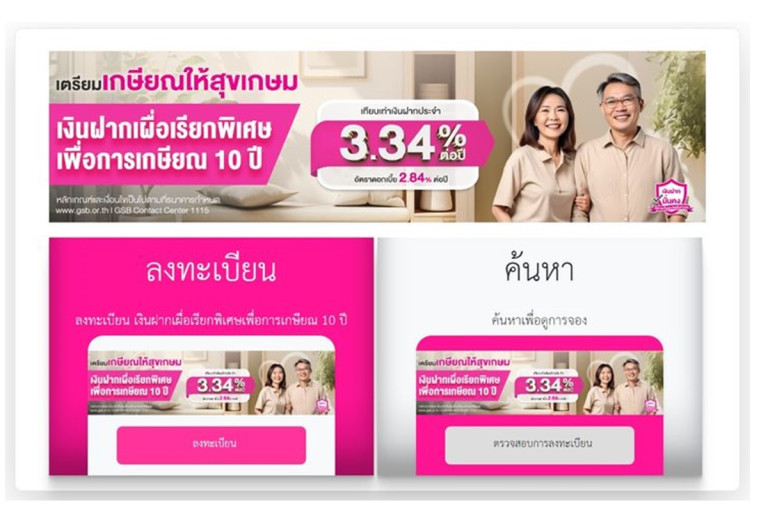เช็กที่นี่! ขั้นตอนลงทะเบียนเงินฝากออมสินเพื่อการเกษียณ 10 ปี ดอกเบี้ย 2.84% ต่อปี ไม่เสียภาษี