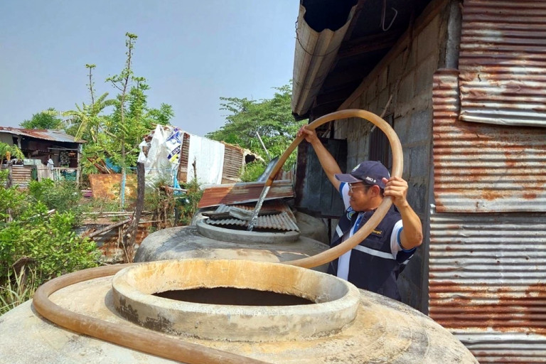 โครงการส่งน้ำและบำรุงรักษาปราณบุรี สนับสนุนรถบรรทุกน้ำขนาด 6,000 ลิตร จำนวน 1 คัน สูบน้ำจากคลองส่งน้ำสายใหญ่ เติมลงสระประปาหมู่บ้านหนองปลายทาง หมู่ที่ 3 ต.ไร่เก่า อ.สามร้อยยอด จ.ประจวบคีรีขันธ์ รวมปริมาณน้ำจำนวน 48,000 ลิตร