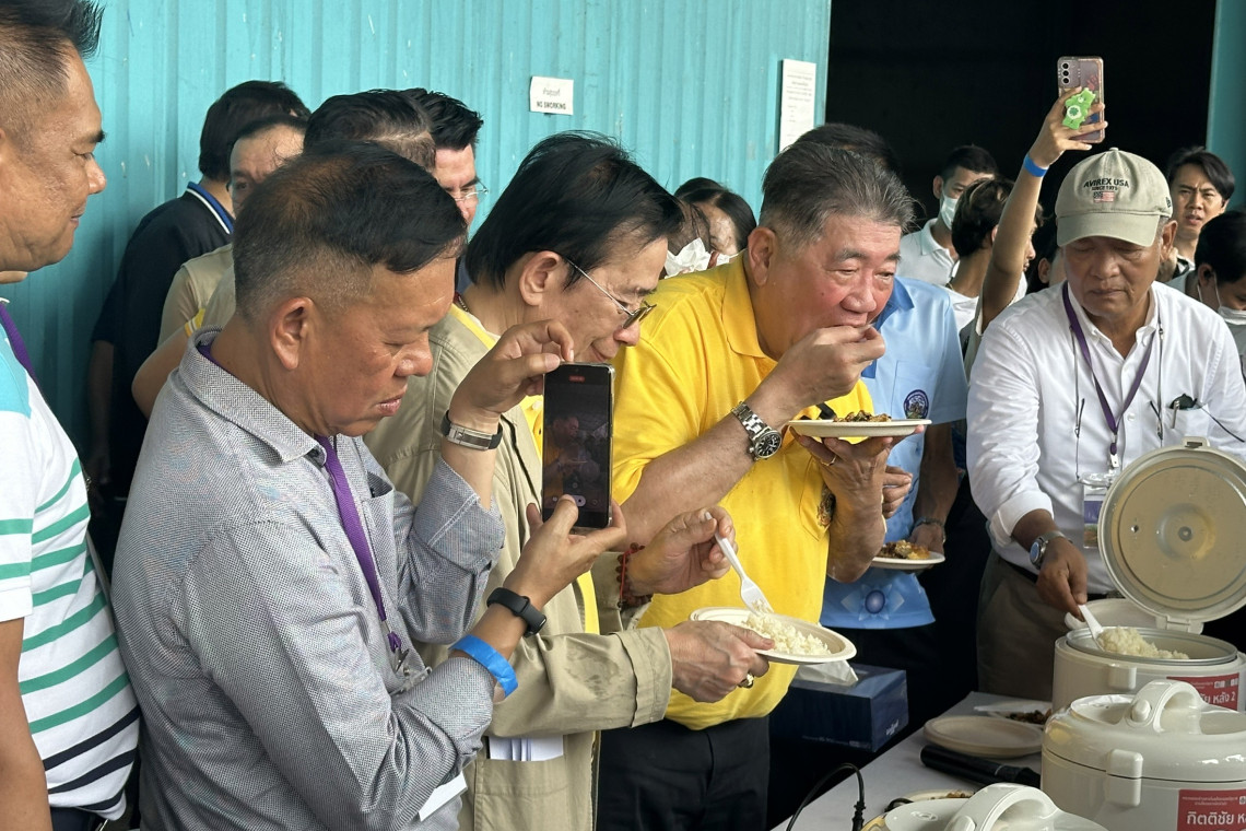 นายภูมิธรรม เวชยชัย รองนายกรัฐมนตรีและรมว.พาณิชย์ กล่าวว่า ครั้งที่แล้ว ได้ลองชิมข้าวกับท่านผู้กำกับ แต่เมื่อทำไปแล้ว มีเสียงทักว่าข้าว 10 ปีกินไม่ได้ เหมือนเล่นละคร ข้าวปีหนึ่งก็เน่าแล้ว 5 ปีก็เน่าแล้ว ปัญหาอยู่ที่การเก็บรักษา ถ้าเก็บรักษาดี ก็สามารถดูแลได้ ถ้าเก็บไม่ดี ไม่ต้อง 5 ปี หนึ่งปีก็เน่าแล้ว ครั้งนี้อยากทำให้เกิดข้อสรุปที่ชัดเจน สิ้นข้อสงสัย จึงเชิญสื่อมวลชนทุกแขนง เจ้าของโรงสี ผู้ส่งออก ผู้ว่าราชการจังหวัดฯ ผู้การตำรวจภูธรจังหวัด สมาชิกสภาผู้แทนราษฎร และผู้ที่เกี่ยวข้อง เป็นสักขีพยาน มีการทำกับข้าวมาให้ด้วย และจะเป็นผู้สังเกตการณ์ให้เจ้าหน้าที่เซอร์เวย์เยอร์ที่ได้รับการขึ้นทะเบียนเอาข้าวใส่ถุง ส่งตัวแทนขึ้นรถตำรวจไปอีกโรงสี บจก.พูนผลเทรดดิ้ง หลัง 4 ต.เฉลียง อ.เมืองสุรินทร์ เพื่อหุงรับประทาน