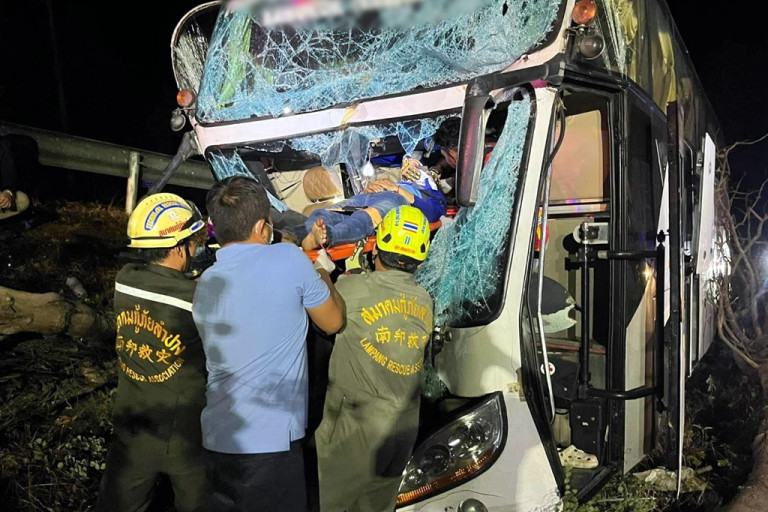 เมื่อวันที่ 7 พ.ค.67 เวลา 23.30 น. พ.ต.ท.เสถียร พันธริยะเสถียร รอง ผกก.(สอบสวน) สภ.เถิน อ.เถิน จ.ลำปางรับแจ้งเหตุรถทัวร์โดยสารเสียหลักชนต้นไม้เกาะกลางถนน มีผู้เสียชีวิตและบาดเจ็บจำนวนมาก ที่บนถนนพหลโยธินสาย ลำปาง-ตาก ขาล่อง กม. 639 บ้านแม่เตี๊ยะหมู่ที่ 8 ต.แม่ถอด อ.เถิน จ.ลำปาง จึงรุดไปที่เกิดเหตุพร้อมเจ้าหน้าที่กู้ชีพกู้ภัยหลากหลายหน่วยงาน