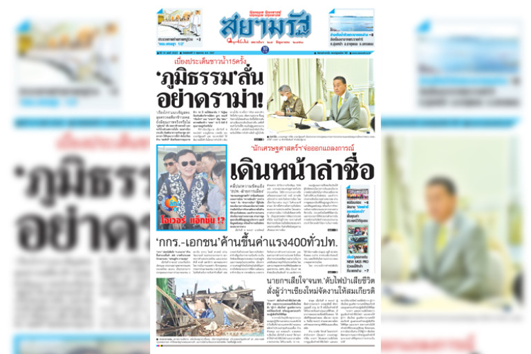 หน้า 1 หนังสือพิมพ์สยามรัฐรายวัน ฉบับวันพฤหัสบดีที่ 9 พฤษภาคม 2567