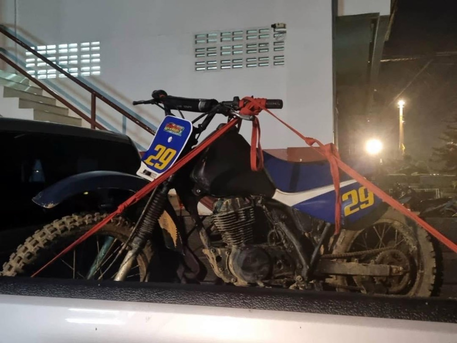 สำหรับ รถจักรยานยนต์วิบากคันดังกล่าว เป็นรถคันที่ถูกนายพรชัย (ขอสงวนนามสกุล) อายุ 39 ปี ชาวบ้าน ต.ป่าสัก อ.เชียงแสน จ.เชียงราย และนายหล้า (ไม่ทราบนามสกุล) ชาวเมียนมา พักอาศัยอยู่ที่บ้าน ม.9 ต.จันจว้า อ.แม่จัน จ.เชียงราย ได้ลักขโมยมาจากพื้นที่ ต.ป่าสัก อ.เชียงแสน เมื่อวันที่ 4 พ.ค. ที่ผ่านมา ก่อนที่ทั้งคู่จะถูกเจ้าหน้าที่ชุดสืบ สภ.เชียงแสน ไปตามจับกุมตัวไว้ได้ที่บ้านของนายพรชัย โดยทั้งคู่รับสารภาพว่าขโมยรถ จยย.คันดังกล่าว พร้อมเครื่องมือช่างอีกจำนวนหนึ่ง แต่ได้นำรถคันดังกล่าวไปแลกเปลี่ยนเป็นยาบ้า จำนวน 200 เม็ด ที่บ้านจอป่าคา ม.14 ต.แม่จัน อ.แม่จัน จ.เชียงราย เพื่อนำยาบ้าที่ได้มาแบ่งกันเสพ