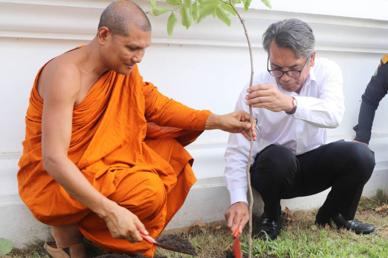 วันนี้ (9 พ.ค. 67) เวลา 09.00 น. นายพิชญลักษณ์ สวยรูป ผู้ช่วยผู้อำนวยการเขตดอนเมือง พร้อมคณะผู้บริหารเขต ข้าราชการ เจ้าหน้าที่ ร่วมกับพระครูปริยัติคุณาทร เจ้าอาวาสวัดคลองบ้านใหม่ จัดกิจกรรม ปลูกต้นไม้ล้านต้น สร้างพื้นที่สีเขียวและกำแพงกรองฝุ่นทั่วกรุง และปรับปรุงภูมิทัศน์บริเวณสวนหย่อมหน้าวัดคลองบ้านใหม่ ถนนเทิดราชัน ตามโครงการถนนสวย 50 เขต โดยร่วมกันปลูกต้นราชพฤกษ์ 50 ต้น ต้นชะแมบทอง 50 ต้น เพื่อช่วยดูดซับก๊าซคาร์บอนไดออกไซด์ (CO2) ช่วยดักจับฝุ่นละอองและดูดซับมลพิษทางอากาศของเมือง สร้างร่มเงาให้แก่เมือง สร้างและส่งเสริมความหลากหลายทางชีวภาพของเมือง