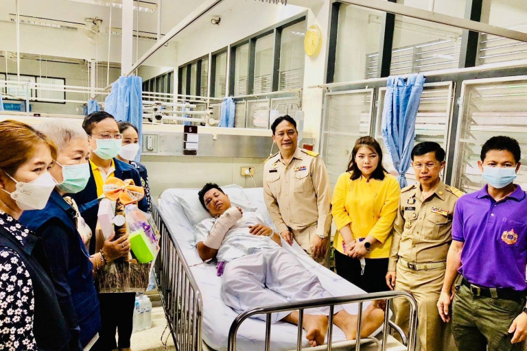 ปลัดกระทรวง ทส. ห่วงใย จนท. สั่ง ทสจ.อุตรดิตถ์ มอบกระเช้าเพื่อเป็นขวัญกำลังใจ เจ้าหน้าที่ปฎิบัติงานดับไฟป่าหลังประสบอุบัติเหตุขณะเดินเข้าไปดับไฟ พลัดลื่นตกลงลำห้วยลึกประมาณ 5 เมตร บริเวณอุทยานน้ำตกแม่เฉย