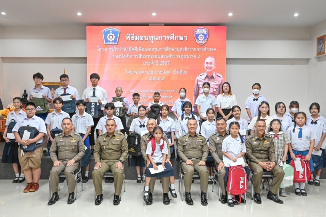 โดยก่อนเข้าพิธีมอบทุนการศึกษา ผบช.ภ.2 ได้รับฟังบรรยายพิเศษจากวิทยากร เรื่องการเก็บกู้วัตถุระเบิด เพื่อเป็นแนวทางความรู้และป้องกันไม่ให้เกิดเหตุ สำหรับผู้เข้ารับทุนมีทั้งหมด จำนวน 67 คน ตั้งแต่ระดับอนุบาลถึงระดับปริญญาตรี ทั้งนี้ ผบช.ภ.2 ได้นำกระเป๋าสะพายหลังมามอบให้กับนักเรียน นักศึกษา เพื่อใช้เป็นประโยชน์ในการศึกษาเล่าเรียน ในภาคเรียนที่กำลังจะเปิดนี้ และสร้างขวัญและกำลังใจแก่ผู้เข้ารับทุนการศึกษาทุกท่าน