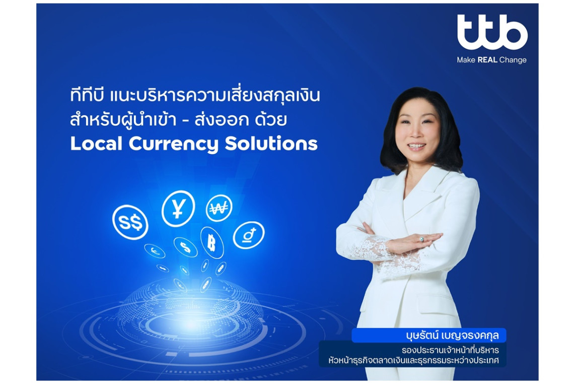 โดย ทีทีบีมุ่งหวังว่า Local Currency Solutions จะสามารถช่วยให้ผู้ประกอบการบริหารต้นทุนธุรกิจและลดความเสี่ยงจากความผันผวนของค่าเงินได้อย่างมีประสิทธิภาพยิ่งขึ้น ลดค่าใช้จ่ายในการดำเนินธุรกิจลง รวมถึงเพิ่มโอกาสขยายตลาดไปยังเป้าหมายใหม่และเจรจาการค้าได้ง่ายขึ้น โดยธนาคารยังคงเดินหน้าพัฒนาบริการและโซลูชันที่มุ่งตอบโจทย์ผู้นำเข้า-ส่งออกอย่างต่อเนื่อง เพื่อช่วยลดต้นทุนและความเสี่ยงในการทำการค้าระหว่างประเทศ พร้อมสนับสนุนให้ลูกค้าสามารถขับเคลื่อนธุรกิจได้ในทุกสถานการณ์ ก้าวผ่านความท้าทายต่าง ๆ จนประสบความสำเร็จและเติบโตได้อย่างยั่งยืน