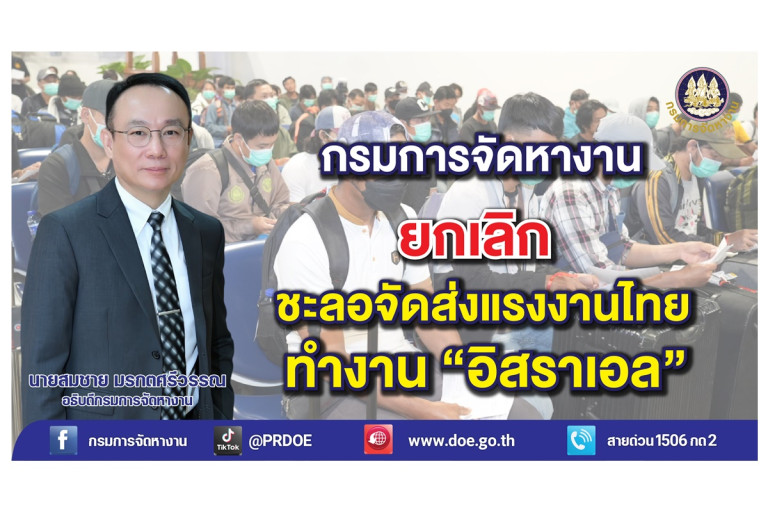 นายสมชาย มรกตศรีวรรณ อธิบดีกรมการจัดหางาน เปิดเผยว่า ขณะนี้กรมการจัดหางานได้ประกาศ “ยกเลิกการชะลอการจัดส่งแรงงานไทยไปทำงานในรัฐอิสราเอล ทุกวิธีการเดินทาง” โดยมีเงื่อนไขว่าแรงงานไทยจะเดินทางไปทำงานในพื้นที่ปลอดภัย "พื้นที่สีเขียว" ตามที่กองบัญชาการแนวหน้าของรัฐอิสราเอลกำหนด เท่านั้น โดยกรมการจัดหางานได้ติดตาม และประเมินสถานการณ์ที่เกิดขึ้นในรัฐอิสราเอล ร่วมกับหน่วยงานที่เกี่ยวข้องอย่างต่อเนื่อง ซึ่งการตัดสินใจในครั้งนี้เป็นผลมาจากสถานเอกอัครราชทูตรัฐอิสราเอล ประจำประเทศไทยได้ยืนยันและเน้นย้ำถึงคำมั่นของรัฐอิสราเอลว่า แรงงานไทยจะถูกส่งไปทำงานในรัฐอิสราเอลเฉพาะพื้นที่ปลอดภัย พร้อมกับเตรียมการรองรับหากเกิดสถานการณ์ฉุกเฉินในกรณีต่างๆ ทั้งด้านแผนช่วยเหลือ แผนอพยพ รวมถึงกรณีปิดน่านฟ้า/เปิดน่านฟ้า ประกอบกับปัจจุบันมีแรงงานไทยแจ้งความต้องการเดินทางไปทำงานในรัฐอิสราเอล มากถึง 30,186 คน และอยู่ระหว่างดำเนินการตามกระบวนการจัดส่งฯ ภายใต้โครงการ TIC ถึง 25,585 คน ซึ่งเมื่อคำนึงถึงความปลอดภัย โอกาสในการทำงานและรายได้ที่สูงของแรงงานไทยแล้ว จึงพิจารณายกเลิกการชะลอการจัดส่งไปทำงานในรัฐอิสราเอล