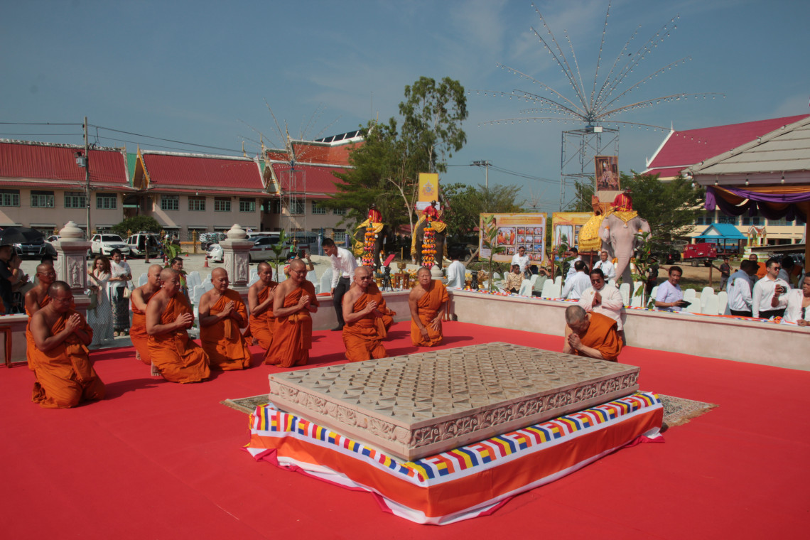 เมื่อเวลา 08.30 น. วันที่ 10 พ.ค.67 ที่ลานธรรมหลวงพ่อทวด วัดแหลมแค ต.หน้าประดู่ อ.พานทอง จ.ชลบุรี สมเด็จพระมหารัชมงคลมุนี (ธงชัย ธมฺมธโช) กรรมการมหาเถรสมาคม เจ้าคณะใหญ่หนกลาง ผู้ช่วยเจ้าอาวาสวัดไตรมิตรวิทยารามวรวิหาร จัดพิธีสมโภช‘พระแท่นวัชรอาสน์’ จำลอง ในวันที่10-12 พ.ค.2567 ถวายเป็นพระราชกุศล 72 พรรษา เนื่องในโอกาสมหามงคลเฉลิมพระชนมพรรษาพระบาทสมเด็จพระเจ้าอยู่หัว ทรงเจริญพระชนมพรรษา 6 รอบ หรือ 72 พรรษา ตลอด 3 วันของงานสมโภชพระสมโภชพระแท่นวัชรอาสน์ จำลอง ในช่วงเช้า วันนี้ มีดร.ฉวีวรรณ คำพานายกสมาคมส่งเสริมการเลี้ยงไก่ แห่งประเทศไทย ในพระบรมราชูปถัมภ์ และประธานบริหารกลุ่มฉวีวรรณกรุ๊ป เป็นประธานฝ่ายฆราวาส โดยมีพิธีบวงสรวง และประกอบพิธีปะกำช้างตามประเพณีโบราณ โดยขบวนช้างจากจังหวัดพระนครศรีอยุธยาจำนวน3เชือกและใช้น้ำนมรดต้นพระศรีมหาโพธิ์ตามประเพณีโบราณ และยังประกอบพิธีบวงสรวงหลวงพ่อทวด หลังจากนั้นนิมนต์พระสงฆ์ทรงสมณศักดิ์จำนวน 10 รูปเจริญพระพุทธมนต์ และถวายภัตราหารเพล ซึ่งได้มีประชาชนในพื้นที่จังหวัดชลบุรีจำนวนมากเข้าร่วมในพิธีครั้งนี้ซึ่งพธีสมโภชน์ยังจะมีขึ้นอีก2วันในวันที่11-12พ.ค.นี้