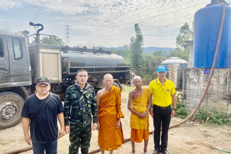 แม่สอด "ผู้ใหญ่หมี" ประสาน ทหารหน่วยเฉพาะกิจราชมนู นำน้ำกินน้ำใช้ มาแจกจ่ายให้ที่วัด และชาวบ้านหนองบัว ที่ได้รับผลกระทบและความเดือดร้อนจากภัยแล้ง