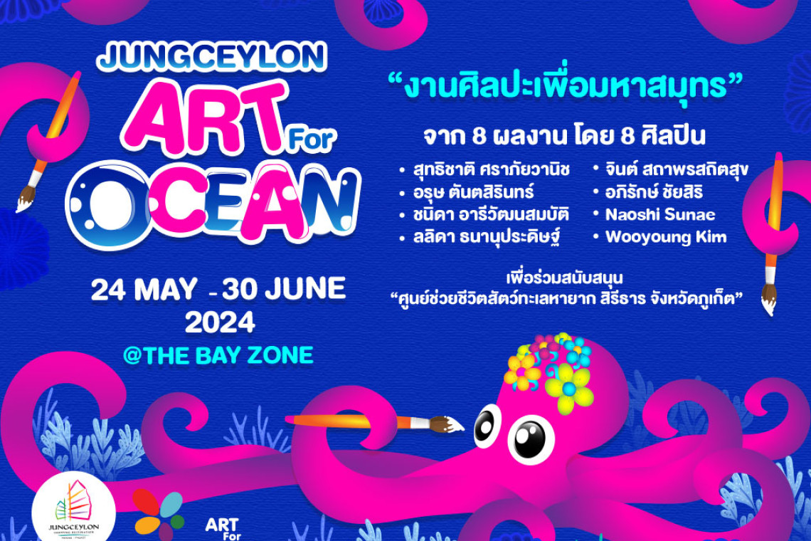 ศูนย์การค้าจังซีลอน ป่าตอง ภูเก็ต ร่วมกับ บริษัท บอลลูนอาร์ท จำกัด เตรียมจัดกิจกรรม เนื่องในเดือนสิ่งแวดล้อมและวันทะเลโลก (World Ocean Day) รวบรวม 8 ผลงาน โดย 8 ศิลปินชื่อดัง มาร่วมกันสร้างสรรค์ผลงานศิลปะบนหนวดปลาหมึกบอลลูนยักษ์ ผ่านกิจกรรม “JUNGCEYLON ART FOR OCEANS” งานศิลปะเพื่อมหาสมุทร เพื่อเชื่อมโยงช่องว่างระหว่างการแสดงออกทางศิลปะ และความพยายามในการอนุรักษ์ทางทะเล ผ่านผลงานศิลปะจากศิลปินทั้ง 8 ท่าน ได้แก่ “สุทธิชาติ ศราภัยวานิช” (โจ นักสืบหัวปลาหมึก), “นอร์ธ - อรุษ ตันตสิรินทร์”, “ชนิดา อารีวัฒนสมบัติ” (ChubbyNida), “ลลิดา ธนานุประดิษฐ์” (SmileSiam) พร้อมด้วยศิลปินชาวภูเก็ต “แจน อภิรักษ์ ชัยสิริ” (KAILAND) ศิลปินแนวสตรีทอาร์ต และ “จินต์ สถาพรสถิตสุข” ผู้ออกแบบน้องจุ้ง มาสคอตประจำจังหวัดภูเก็ต นอกจากนั้นยังได้ศิลปินชาวต่างชาติ ได้แก่ “Naoshi Sunae” ศิลปินวาดภาพประกอบชาวญี่ปุ่น และ “Wooyoung Kim” ศิลปินแนวอนุรักษ์สิ่งแวดล้อมชาวเกาหลีร่วมด้วย