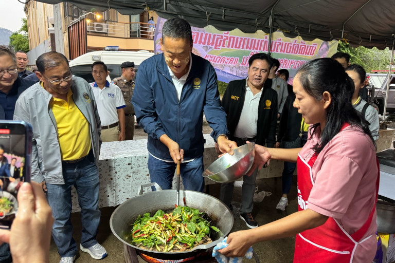 วันที่ 11 พ.ค. 2567 ผู้สื่อข่าวรายงานว่า ภายหลังเสร็จสิ้นภารกิจการลงพื้นที่อ.สังขละบุรี จ.กาญจนบุรี นายเศรษฐา ทวีสิน นายกรัฐมนตรี ได้ร่วมรับประทานอาหารริมแม่น้ำแคว โดยก่อนรับประทานอาหารนายกฯ ได้โชว์ฝีมือผัดเมนูผัดเห็ดโคน ซึ่งเห็ดโคนเป็นของดีเมืองกาญจนบุรีที่ขึ้นชื่อและราคาแพง โดยออกปีละ 1 ครั้ง