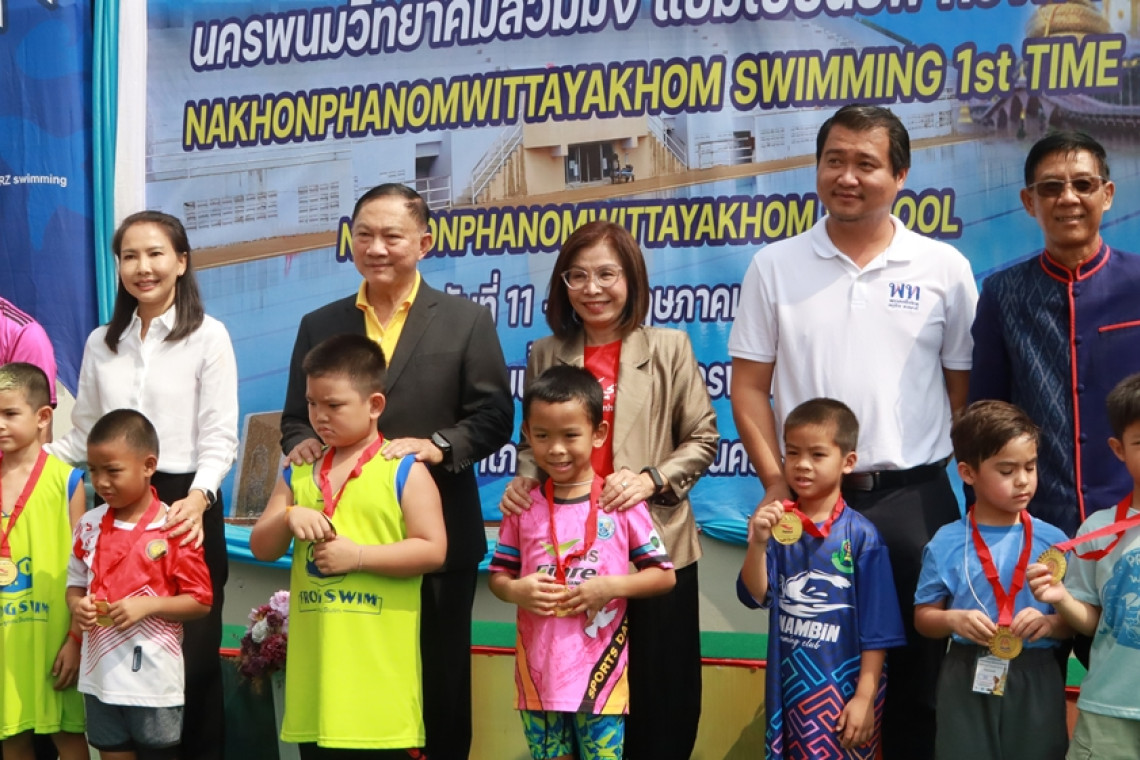 นครพนม มนพร เจริญศรี รมช.คมนาคม ในฐานะศิษย์เก่า โรงเรียนนครพนมวิทยาคม หนุนจัดแข่งขันว่ายน้ำ รุ่นจิ๋ว มีอายุต่ำสุดแค่ 5 ขวบ ว่ายไกลถึง 50 เมตร เฟ้นหาตัวแทนนักกีฬาสู่ระดับชาติ สร้างโอกาสลูกหลานเยาวชน เป็นนักกีฬาอาชีพ ส่งเสริมกีฬาว่ายน้ำ ต้านยาเสพติด รำลึกสถาปนา ครบ 47 ปี โรงเรียนดังประจำจังหวัด นครพนมวิทยาคม เน้นพัฒนาการศึกษา ควบคู่ส่งเสริมด้านการกีฬาสู่ระดับชาติ ย้ำผู้ปกครอง ส่งเสริมลูกหลานเยาวชน ฝึกว่ายน้ำ