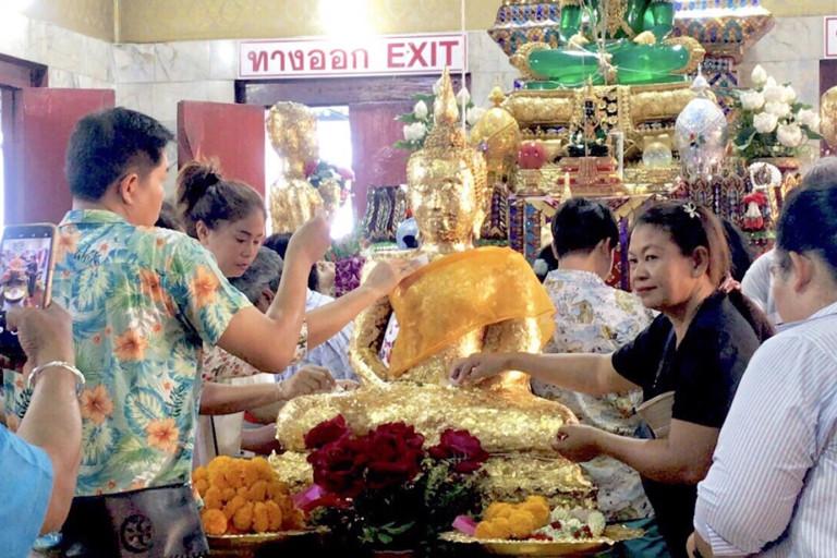 สำหรับการเข้ากราบไหว้ สักการะ ขอพร”หลวงพ่อปากแดง”ก็จะมีเครื่องสักการะ เช่น ดอกไม้ ธูปเทียน กล้วยน้ำว้า หมากพลู พวงมาลัย และน้ำแดง ที่ทางวัดได้จัดเตรียมไว้ให้บูชา ภายในพระอุโบสถก็ยังมีให้ปิดทององค์หลวงพ่อปากแดงจำลอง เสี่ยงเซียมซี และจุดที่นักท่องเที่ยวสนใจที่สุดก็คือ”อ่างน้ำมนต์”ที่สามารถพรมได้ด้วยตัวเอง เพื่อความเป็นสิริมงคล และส่องเลขเด็ดน้ำตาเทียนที่ลอยเด่นอยู่ในอ่างน้ำมนต์ ต่างก็มุงดูและถ่ายรูปเก็บไว้ ซึ่งเห็นเป็นเลข 7 0 6 , 4 3 2 9 ซึ่งน้ำตาเทียนบางส่วนก็ได้นำขึ้นมาวางไว้ในพานเห็นเลข 3 4 6 , 8 0 หรือแล้วแต่ใครจะมองแล้วตีเป็นเลขอะไรกัน บางรายเมื่อกลับไปก็มีโชคถูกหวยกันถ้วนหน้า ทำให้มีบรรดานักเสี่ยงโชคต่างก็อยากมากราบไหว้ ขอโชค หลวงพ่อปากแดง ศักดิ์สิทธิ์ เพื่อหวังจะมีโชคถูกหวยเหมือนกับคนอื่นบ้าง อันนี้ก็ขึ้นอยู่กับดวงของแต่ละคน สิ่งที่สำคัญควรหมั่นสร้างความดี ทำบุญและให้ทานเป็นการสะสมบุญเพื่อเป็นพลังบวกในการดำเนินชีวิตอย่างมีสติต่อไป