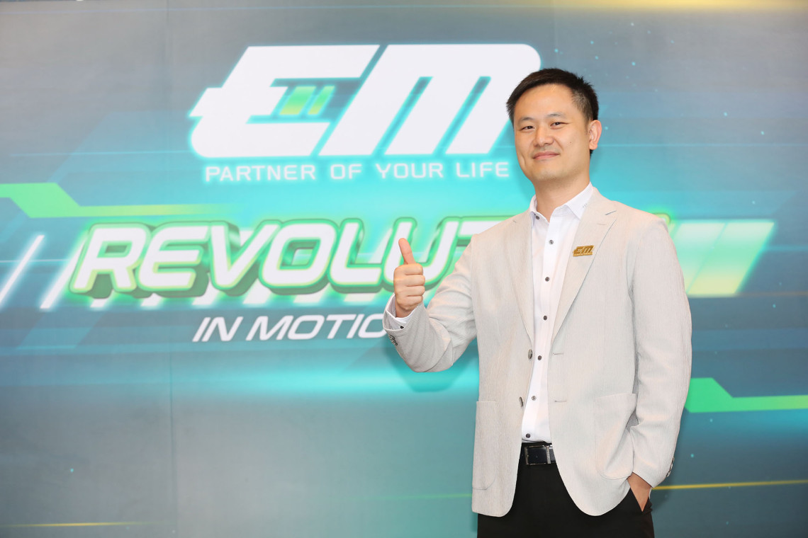“EM คือ ผู้ผลิต และจำหน่ายรถจักรยานไฟฟ้าและจักรยานยนต์ไฟฟ้า เมดอินไทยแลนด์ เจ้าแรกของเมืองไทย ปัจจุบันเราครองอันดับ 3 ของตลาดรถจักรยานยนต์ไฟฟ้า ซึ่งสัดส่วนมาร์เก็ตแชร์ของตลาดมอเตอร์ไซค์จะแบ่งเป็น มอเตอร์ไซค์น้ำมัน 99 เปอร์เซ็นต์ และจักรยานยนต์ไฟฟ้ามีมาร์เก็ตแชร์อยู่ที่ 1 เปอร์เซ็นต์ หรือประมาณ 1,000 ล้านบาท โดยปัจจัยที่ช่วยกระตุ้นให้ตลาดเติบโต คือ เทรนด์การรักษ์โลก, มลพิษทางอากาศ และ ปัญหาฝุ่น PM 2.5 รวมถึงราคาน้ำมันที่เพิ่มสูงขึ้น ปัจจัยเหล่านี้ทำให้ผู้คนตระหนักถึงปัญหาสิ่งแวดล้อม และปัญหาด้านพลังงาน ดังนั้นจึงทำให้ตลาดรถยนต์ไฟฟ้าและจักรยานยนต์ไฟฟ้าเติบโตขึ้นอย่างต่อเนื่อง อีกหนึ่งปัจจัยที่สำคัญมากคือ การสนับสนุนจากภาครัฐ” นายธานัท กล่าว และกล่าวปิดท้ายว่า