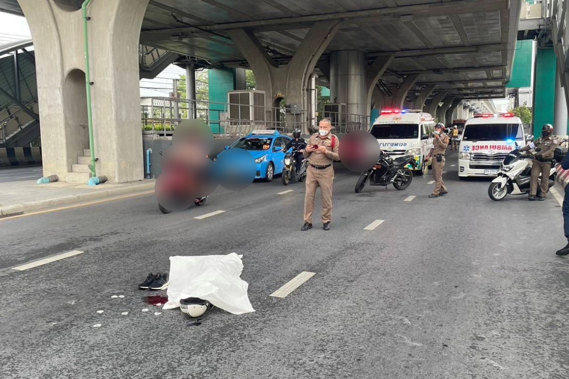 ที่เกิดเหตุอยู่กลางถนนพหลโยธิน ขาเข้า ช่วงสถานีรถไฟฟ้าพิพิธภัณฑ์ทหารอากาศ พบศพนายนิธิ (ขอสงวนนามสกุล) อายุ 25 สภาพศพนอนหงายจมกองเลือดสวมเสื้อยืดแขนสั้นสีเทา กางเกงขาสั้นสีดำ มีบาดแผลศีรษะแตก ร่างกาย แขน ขาหักผิดรูป ใกล้กันมีหมวกกันน๊อคแบบครึ่งใบตกอยู่