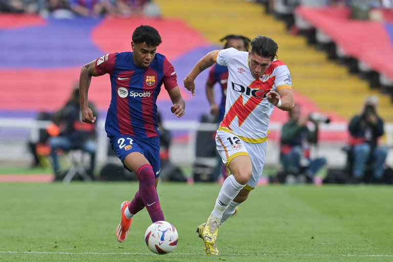 ที่สนาม โอลิมปิค มอนต์จูอิค ประเทศสเปน ในการแข่งขันฟุตบอลลาลีก้า ฤดูกาล 2023-2024 คืนวันที่ 19 พ.ค.67 ระหว่างทีม "บาร์เซโลน่า" พบกับทีม "ราโย่ บาเญกาโน่" เริ่มเกมการแข่งขัน นาทีที่ 3 บาร์เซโลน่า ขึ้นนำ 1-0 จังหวะที่ ยามาล ลากตัดเข้าซ้ายแล้วหยอดไปกลางเขตโทษให้ เลวานดอฟสกี้ พักอกหนีตัวประกบก่อนวอลเลย์เน้นๆ บอลพุ่งเข้าประตูไป