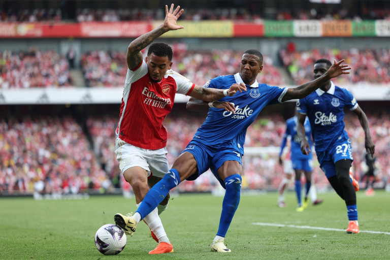 ที่สนาม เอมิเรตส์ สเตเดี้ยม ประเทศอังกฤษ ในการแข่งขันฟุตบอลพรีเมียร์ลีก ฤดูกาล 2023-2024 คืนวันที่ 19 พ.ค.67 ระหว่างทีม "อาร์เซน่อล" พบกับทีม "เอฟเวอร์ตัน" เริ่มเกมการแข่งขัน นาทีที่ 40 เอฟเวอร์ตัน นำ 1-0 จากฟรีคิกของเกย์ ปั่นไปแฉลบกำแพงเปลี่ยนทางเข้าประตูไป