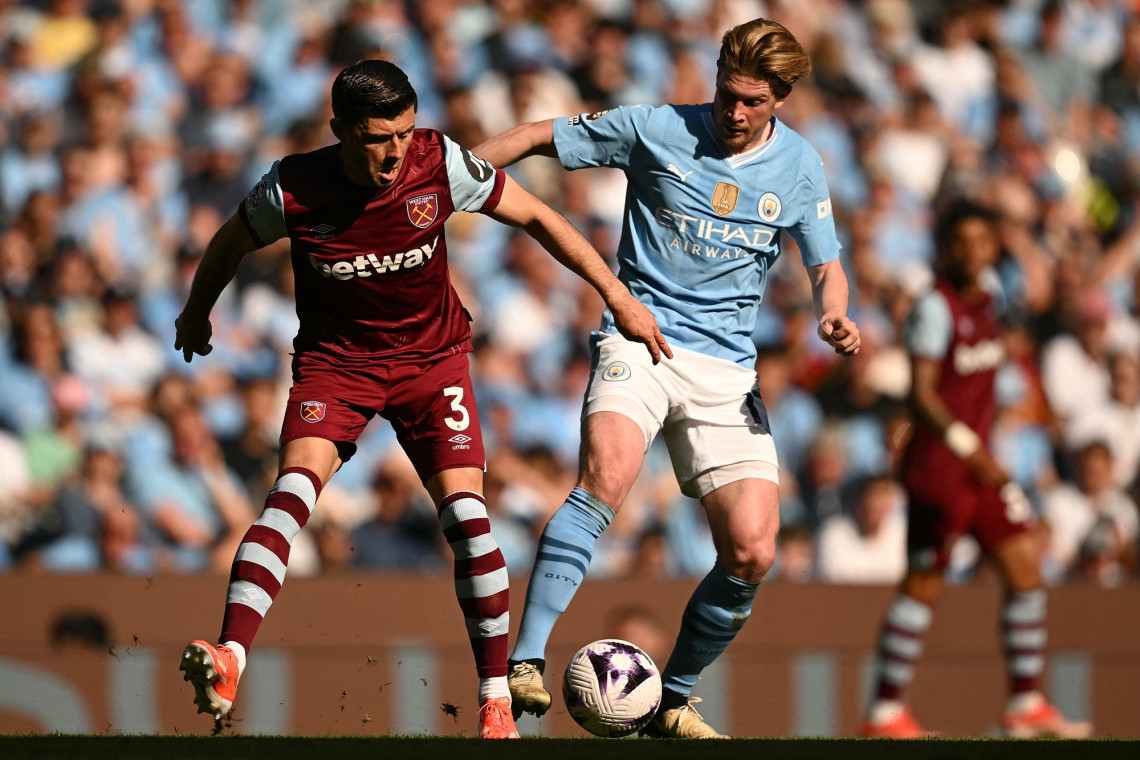 นาทีที่ 19 แมนซิตี้ นำ 2-0 จังหวะที่ โดกู ทะลุมาทางริมเส้นจนถึงเขตโทษมีแนวรับเวสต์แฮม ขวางอยู่เพียบ แต่ตบเข้าในให้ โฟเด้น ตวัดยิงด้วยซ้ายแบบไม่จับบอลเข้าไป นาทีที่ 43 เวสต์แฮม ตีไข่แตก 1-2 จังหวะนี้ได้เตะมุมเปิดเข้าเขตโทษบอลตกใส่ ซูเซ็ค เด้งเข้าทาง คูดุส เกี่ยวได้แล้วยิงด้วยท่าจักรยานอากาศส่งบอลตุงตาข่าย