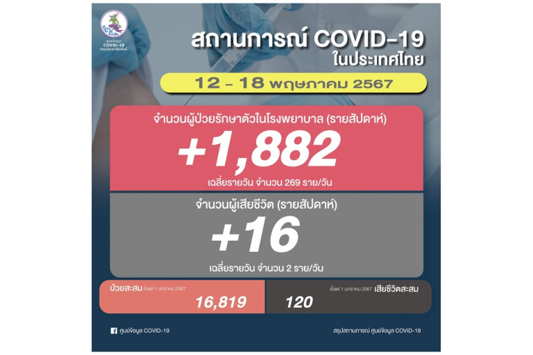 ผู้ป่วยรักษาในโรงพยาบาล สะสม 16,819 ราย (ตั้งแต่ 1 มกราคม 2567)