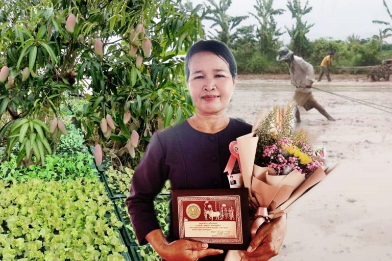 นางอัญชัน สุขจันทร์ เกษตรกรดีเด่นแห่งชาติ สาขาไร่นาสวนผสม ประจำปี พ.ศ. 2567 เปิดเผยว่า เดิมทำเกษตรเชิงเดี่ยว ปลูกข้าวเป็นหลักตามอย่างบรรพบุรุษ เน้นใช้สารเคมี จึงประสบปัญหา ทำให้มีหนี้สิน กระทั่งมีเจ้าหน้าที่จากกรมส่งเสริมการเกษตรเข้ามาให้คำแนะนำองค์ความรู้ต่าง ๆ ในการทำเกษตร และมีโอกาสไปศึกษาดูงาน ณ เขาหินซ้อนอันเนื่องมาจากพระราชดำริ จังหวัดฉะเชิงเทรา และโครงการชั่งหัวมัน จังหวัดเพชรบุรี จึงมีความคิดที่จะเปลี่ยนแปลงรูปแบบการทำเกษตร โดยนำองค์ความรู้ที่ได้มาปรับใช้ในการแก้ไขปัญหา เริ่มจากปรับพื้นที่นาข้าว เปลี่ยนมาทำไร่นาสวนผสม ขุดสระ เจาะน้ำบาดาล แบ่งพื้นที่ทำที่อยู่อาศัย ปลูกผัก ไม้ผล สมุนไพร ปลูกกล้วยแซมอ้อย สร้างคอกเลี้ยงสัตว์และเลี้ยงปลา ปรับพื้นที่เป็นโคกหนองนา เปลี่ยนระบบการผลิตเมล็ดข้าวอินทรีย์โดยไม่ใช้สารเคมี ทำโรงเรือนปลูกผักอินทรีย์ เลี้ยงสัตว์ และแปรรูปผลผลิตของฟาร์ม ในปีแรกๆ ที่ทำ ก็มีปัญหาอุปสรรคบ้าง โดยเฉพาะการยอมรับจากคนในครอบครัว แต่ก็สามารถฝ่าฟันอุปสรรคมาได้จนประสบความสำเร็จและได้รับการยอมรับจากครอบครัวและชุมชน จนปัจจุบันพัฒนาปรับเปลี่ยนการทำเกษตรมาตามลำดับ ลดพื้นที่การทำนาจาก 11 ไร่ เหลือเพียง 5 ไร่ เพื่อผลิตเมล็ดพันธุ์ข้าวอินทรีย์คุณภาพ ที่เหลือจะจัดสรรทำเกษตรแบบผสมผสาน ปลูกไม้ผล ผักสวนครัว ทำโรงเรือนปลูกผักอินทรีย์ เลี้ยงไก่ไข่อารมณ์ดี เลี้ยงกบ เลี้ยงปลา เลี้ยงโค เลี้ยงแมลงเศรษฐกิจ ปลูกข่า โดยได้นำหลักปรัชญาเศรษฐกิจพอเพียงมาปรับใช้ในทุกกิจกรรม