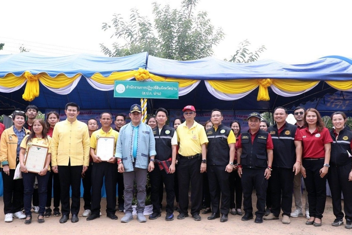 ในการนี้ รมว.กษ. ได้เยี่ยมชมนิทรรศการหน่วยงานในสังกัดกระทรวงเกษตรและสหกรณ์ มอบนโยบาย และพบปะเกษตรกร ผู้นำเกษตรกรในพื้นที่เสนอปัญหาความต้องการ และมอบโฉนดเพื่อการเกษตร จำนวน 200 ราย 276 แปลง 963 - 0 - 20 ไร่ ให้แก่เกษตรกรอำเภอเมืองน่าน อำเภอเวียงสา อำเภอสันติสุข อำเภอบ้านหลวง สำหรับโฉนดเพื่อการเกษตร เกษตรกรจะต้องใช้ประโยชน์ในด้านการเกษตรเท่านั้น ทั้งนี้ การยกระดับเอกสารสิทธิจาก ส.ป.ก.4-01 เป็นโฉนดเพื่อการเกษตรกร เป็นการเพิ่มมูลค่าและเพิ่มโอกาสในการเข้าถึงแหล่งทุนแก่เกษตรกร และจะมีการพัฒนา ยกระดับสิทธิประโยชน์ให้มากขึ้นในอนาคต