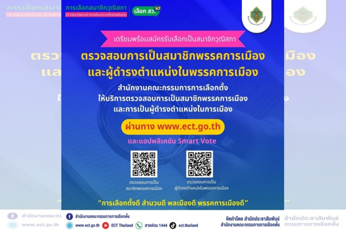 กกต.เชิญชวนผู้สมัคร สว.ตรวจสอบการเป็นสมาชิกพรรคการเมืองและผู้ดำรงตำแหน่งในพรรคการเมือง แก้ปัญหาทำผิดกฎหมาย