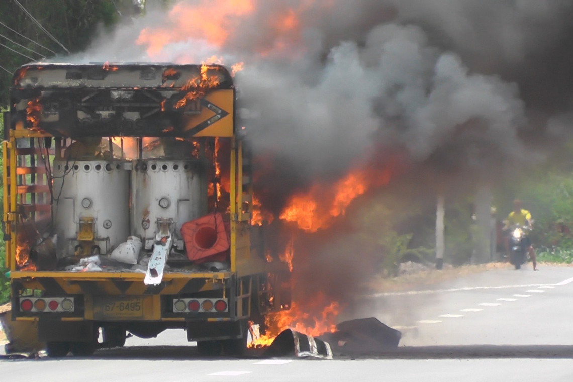 ซึ่งขณะที่ทีมผู้สื่อข่าวเดินทางผ่านไปยังช่วงที่เกิดเหตุพอดี สามารถมองเห็นกลุ่มควันที่ลอยขึ้นสีดำได้ไกล เป็นระยะทางหลายกิโลเมตร ขณะเข้าถึงจุดเกิดเหตุ รถที่สัญจร ทั้งขาเข้าและขาออกเมืองชัยภูมิ ได้จอดเว้นระยะห่างประมาณ 3-4 ร้อยเมตร เพื่อความปลอดภัยเพราะมีเสียงระเบิดดังออกมาจากรถบ่อยครั้ง ในช่วงทั้งสองช่องการจราจร ยังไม่มีรถกล้าวิ่งผ่านจุดดังกล่าว เนื่องจากพบว่า ไฟได้โหมลุกไหม้อย่างหนัก บนรถสารเคมีตีเส้นจราจร มีถังแก๊สที่กำลังถูกไฟไหม้และยังไม่ติดไฟเหลืออยู่ภายในรถอีกหลายถัง ซึ่งอาจจะเกิดระเบิดขึ้นมาอีกได้ ระหว่างประสานเจ้าหน้าที่นำรถดับเพลิงเข้ามาฉีดดับไหม้ที่กำลังลุกไหม้ภายในตัวรถตีเส้นจราจรท่วมคัน