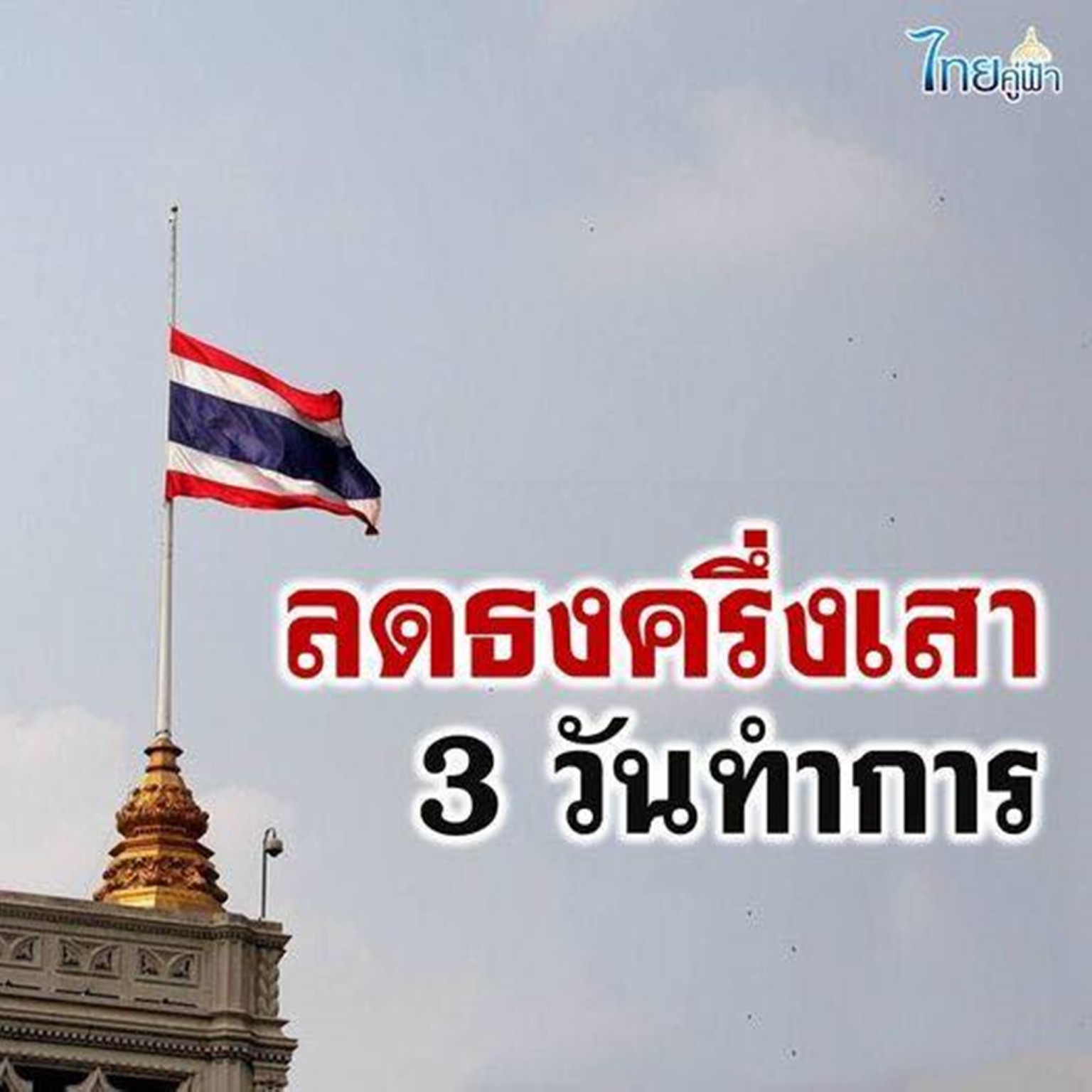เมื่อวันที่ 21 พ.ค.67 เพจเฟซบุ๊ก "ไทยคู่ฟ้า" โพสต์รูปพร้อมข้อความ ระบุว่า ประกาศลดธงครึ่งเสา 3 วันทำการ เพื่อไว้อาลัยแด่ประธานาธิบดีแห่งสาธารณรัฐอิสลามอิหร่าน