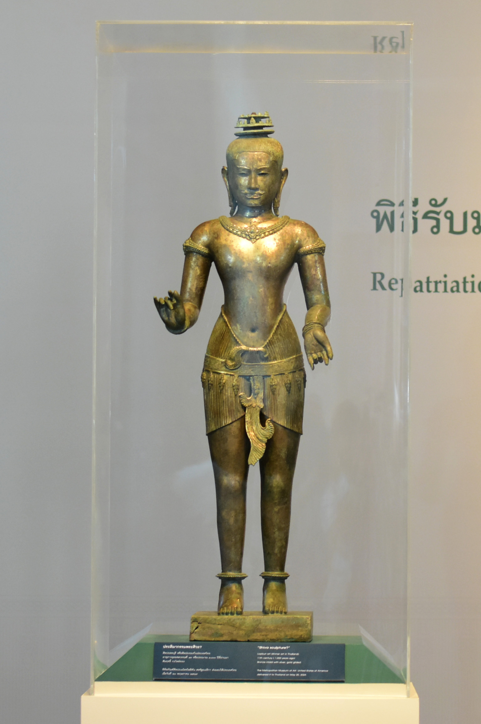ทั้งนี้ เมื่อเดือนธันวาคม 2566 กระทรวงวัฒนธรรม โดยกรมศิลปากร ได้รับการประสานจากพิพิธภัณฑ์ศิลปะเมโทรโพลิทัน สหรัฐอเมริกา ว่ามีความประสงค์ส่งมอบโบราณวัตถุ จำนวน 2 รายการ คืนให้กับประเทศไทย ประกอบด้วย ประติมากรรมสำริดรูปพระศิวะ (The Standing Shiva) หรือ ที่รู้จักกันในนาม โกลเด้นบอย (Golden Boy) และประติมากรรมรูปสตรีพนมมือ (The Kneeling Female) เนื่องจากพิพิธภัณฑ์ศิลปะเมโทรโพลิทันพบว่า โบราณวัตถุดังกล่าว ถูกลักลอบนำออกนอกราชอาณาจักรไทยโดยผิดกฎหมาย จึงได้ถอดโบราณวัตถุทั้ง 2 รายการ ออกจากบัญชีของพิพิธภัณฑ์ และประสานขอส่งคืนให้ประเทศไทย เพื่อแสดงถึงการที่พิพิธภัณฑ์ศิลปะเมโทรโพลิทัน ให้ความสำคัญกับที่มาอันถูกต้องของโบราณวัตถุในครอบครอง ซึ่งผลการประสานงานเป็นไปด้วยดี กระทั่งพิพิธภัณฑ์ได้ส่งโบราณวัตถุกลับคืนถึงประเทศไทยเมื่อวันที่ 20 พฤษภาคม 2567