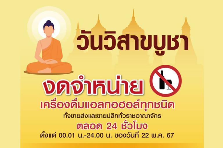 วันที่ 21 พฤษภาคม 2567 ที่กองสารนิเทศ สำนักงานตำรวจแห่งชาติ พล.ต.ต.หญิง สมพร พูลเกษม ผู้บังคับการกองสารนิเทศ เปิดเผยว่า ด้วยวันที่ 22 พฤษภาคม 2567 เป็น“วันวิสาขบูชา” และมีประกาศสำนักนายกรัฐมนตรี เรื่อง กำหนดวันห้ามขายเครื่องดื่มแอลกอฮอล์ (ฉบับที่ 3) พ.ศ.2558 ห้ามมิให้ผู้ใดขายเครื่องดื่มแอลกอฮอล์ในวันมาฆบูชา วันวิสาขบูชา วันอาสาฬบูชา วันเข้าพรรษา และวันออกพรรษา ยกเว้นเฉพาะร้านค้าปลอดอากรภายในอาคารท่าอากาศยานนานาชาติ โดยมีกระทรวงสาธารณสุขเป็นหน่วยรับผิดชอบควบคุม กำกับ ดูแล ตามพระราชบัญญัติควบคุมเครื่องดื่มแอลกอฮอล์ พ.ศ.2551