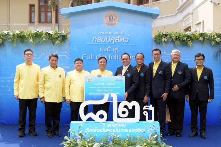 นายสัตวแพทย์ปราโมทย์ ตาฬวัฒน์ นายกสัตวแพทยสมาคมแห่งประเทศไทย ในพระบรมราชูปถัมภ์ นำทีมคณะกรรมการบริหารและที่ปรึกษาสัตวแพทยสมาคมแห่งประเทศไทยฯ ร่วมแสดงความยินดีกับ ร้อยเอกธรรมนัส พรหมเผ่า รัฐมนตรีว่าการกระทรวงเกษตรและสหกรณ์ และนายสัตวแพทย์สมชวน รัตนมังคลานนท์ อธิบดีกรมปศุสัตว์ เนื่องในวันคล้ายวันสถาปนากรมปศุสัตว์ ครบรอบ 82 ปี (5 พฤษภาคม 2567) ในปีนี้กรมปศุสัตว์จัดงานภายใต้แนวคิด “กรมปศุสัตว์ มุ่งมั่นสู่ Full Digitalization”
