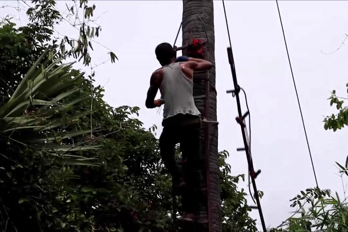วันนี้ (21 พ.ค.67) ผู้สื่อข่าวรายงาน มีคลิปวีดีโอจากชาวบ้านท่านหนึ่งสามารถบันทึกขณะที่มีคนตกลงมาจากต้นตาลลอยละลิ่วปลิวตกต้นตาล ขณะกำลังเก็บลูกตาลเพื่อนำมาขาย โดยคนที่ตกลงมามีแค่แผลถลอกเล็กน้อย ถือว่ารอดตายราวปาฏิหาริย์ รอดตายมีแค่ครั้งเดียวกับความสูงแบบนี้ โดยต้นตาลนั้นมีความสูงกว่า 10 เมตร เหตุเกิดเมื่อวันที่ 8 พ.ค.67 ที่ผ่านมา ที่ทุ่งนาบ้านดงมะไฟ ต.นาพู่ อ.เพ็ญ จ.อุดรธานี ต่อมาวันนี้ (21 พ.ค.67) ผู้สื่อข่าวเดินทางลงพื้นที่ไปหาและได้พูดคุยกับชาวบ้าน โดยได้พบกับนายวัชระ ซุ่ยเสนา หรือเซียง อายุ 39 ปี เซียนขึ้นต้นตาลพร้อมทีมงาน กำลังเก็บลูกตาลอย่างขะมักเขม้น เพื่อเตรียมส่งจำหน่ายให้พ่อค้าคนกลาง และจำหน่ายในพื้นที่