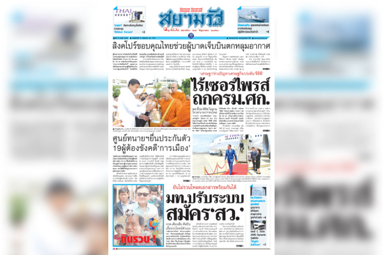 หน้า 1 หนังสือพิมพ์สยามรัฐรายวัน ฉบับวันพฤหัสบดีที่ 23 พฤษภาคม 2567