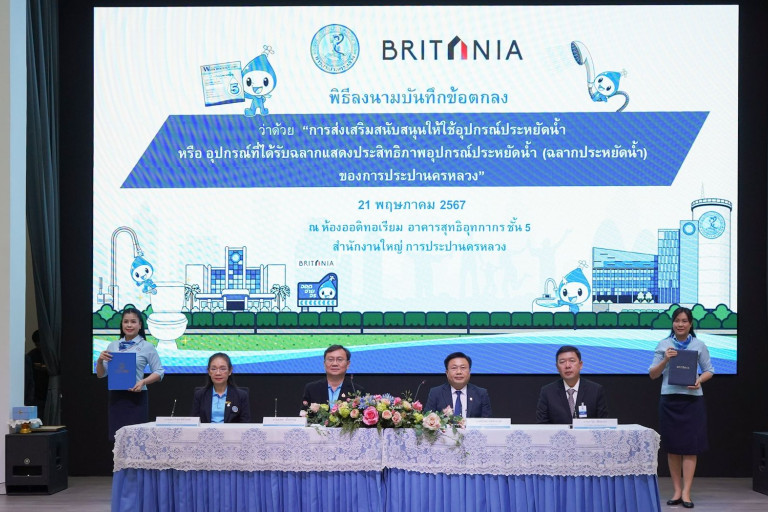 บริษัท บริทาเนีย จำกัด (มหาชน) หรือ BRI ผู้นำในการพัฒนาอสังหาริมทรัพย์ ที่มุ่งมั่นพัฒนาที่อยู่อาศัยเพื่อสังคมที่ดีอย่างยั่งยืน ร่วมมือ การประปานครหลวง ลงนามบันทึกความเข้าใจ (MOU) การส่งเสริมสนับสนุนให้ใช้อุปกรณ์ประหยัดน้ำ หรือ อุปกรณ์ที่ได้รับฉลากประหยัดน้ำของการประปานครหลวง เดินหน้าติดตั้งอุปกรณ์ประหยัดน้ำ ตั้งแต่ขั้นตอนการออกแบบก่อสร้าง สร้างความมั่นใจให้กับลูกค้า นำร่องติดตั้ง 25 โครงการ เพื่อการใช้น้ำประปาที่มีคุณภาพ ประหยัดพลังงาน และยืดอายุการใช้งานยั่งยืน