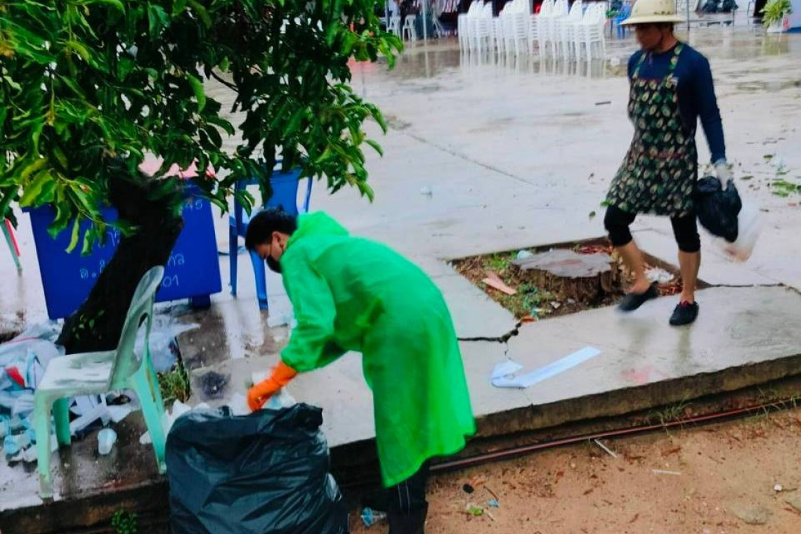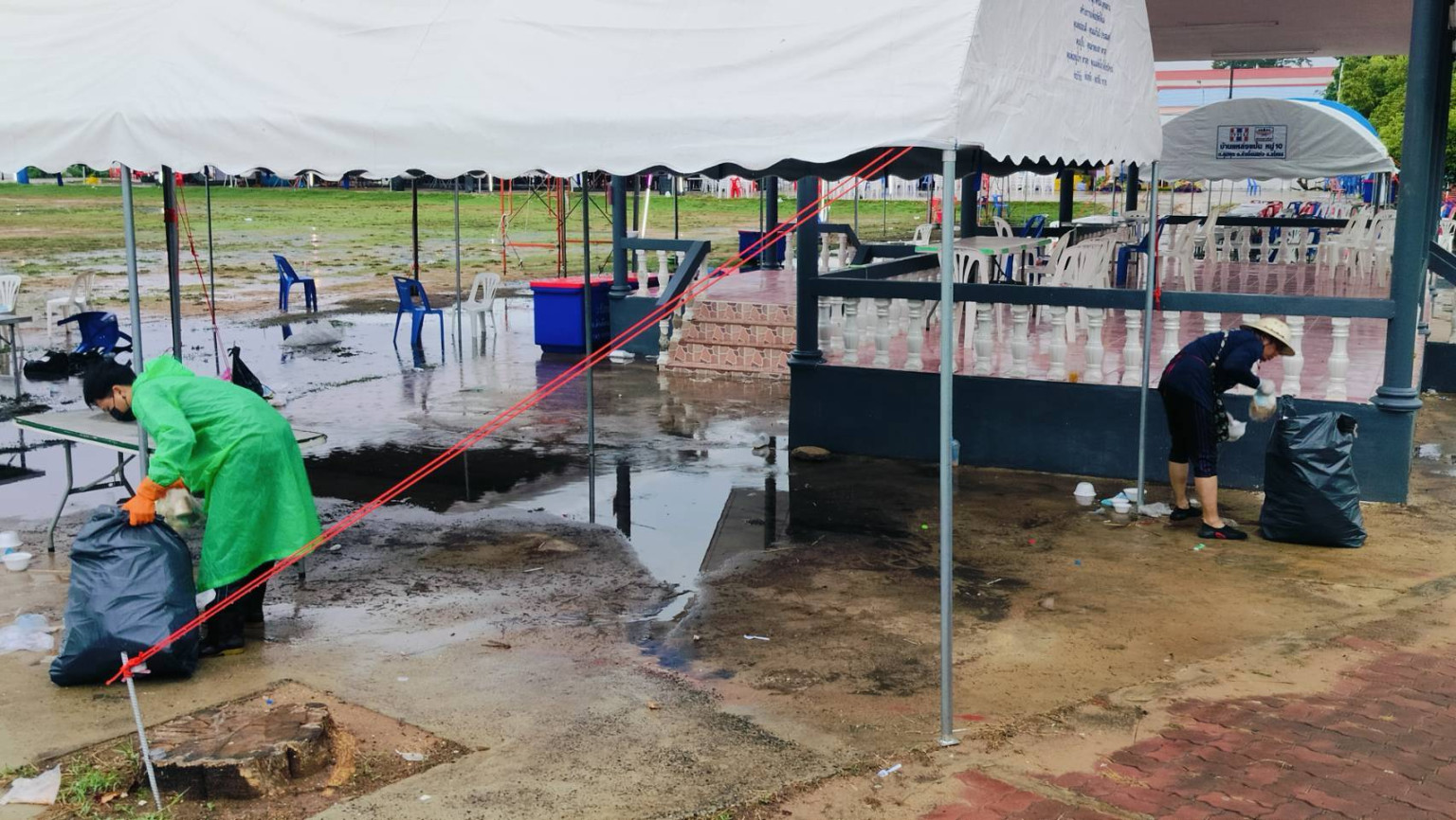 วันที่ 23 พ.ค.67 ผู้สื่อข่าวรายงานว่า ที่สนามหน้าที่ว่าการอำเภอคำเขื่อนแก้ว จังหวัดยโสธรพนักงานกองสาธารณสุขและสิ่งแวดล้อมเทศบาลตำบลคำเขื่อนแก้วฝ่าสายฝนและเสียงฟ้าร้องช่วยกันเก็บกวาดขยะภายหลังจากคืนที่ผ่านมาอำเภอคำเขื่อนแก้วพร้อมทั้งพุทธศาสนิกชนตลอดจนประชาชนได้ร่วมกันจัดกิจกรรมเนื่องในโอกาสวันวิสาขบูชาที่ประชนเดินทางมาร่วมกิจกรรมจำนวนมากและหลังกิจกรรมเสร็จสิ้นลงสิ่งที่ตามมาคือขยะกระจัดกระจายแต่อำเภอคำเขื่อนแก้วเป็นเมืองสะอาดถือเป็นอำเภอต้นแบบของจังหวัดยโสธรในการรักษาความสะอาดดังนั้นแม้ว่าฝนจะตกฟ้าจะร้องพนักงานกองสาธารณสุขและสิ่งแวดล้อมเทศบาลตำบลคำเขื่อนแก้วต่างเร่งช่วยกันทำความสะอาดเพื่อให้บริเวณดังกล่าวสะอาดสวยงาม