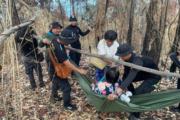 นครพนม ชื่นชมฮีโร่ทหารพราน ช่วยชีวิตรองผู้อำนวยการหญิง วิทยาลัยเทคนิค วัย 56 ปี ป่วยวูบ จากโรคประจำตัวกลางเขาภูลังกา ขณะทำกิจกรรมพัฒนา ต้องทำเปลปฐมพยาบาลสนามเฉพาะกิจ แบบคานหาบ แบกลงจากเขาระยะทาง กว่า 3 กิโลเมตร นานกว่า 4 ชั่วโมง สุดท้ายปลอดภัย นำส่งโรงพยาบาลสำเร็จ