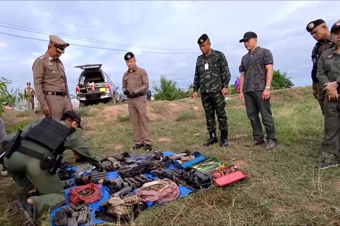 วันนี้ (23 พ.ค.67) เวลา 16.00 น. ร.ต.อ.อุทัย วังทัน พนักงานสอบสวน สภ.นาข่า อ.เมืองอุดรธานี ได้รับแจ้งมีชาวบ้านไปหว่านแหที่ประตูระบายน้ำ อ่างเก็บน้ำหนองสำโรง หน้าสนง.ชลประทานที่ 5 บ้านหมูม่น ต.หมูม่น อ.เมือง จ.อุดรธานี แต่ชาวบ้านพบวัตถุระเบิดและอาวุธสงครามจำนวนมาก จึงประสานหน่วยเก็บกู้วัตถุระเบิดตำรวจภูธรจังหวัดอุดรธานี (EOD) รุดไปตรวจสอบที่เกิดเหตุ และรายงานผู้บังคับบัญชาทราบ ต่อมา พล.ต.ต.สันธาน อินทรจักร ผบก.ตร.ภูธร จ.อุดรธานี,พร้อมด้วย พ.ต.อ.พัฒนวงศ์ จันทร์พล ผกก.สภ.เมืองอุดรธานี และตร. EOD จึงเดินทางไปที่เกิดเหตุ เจ้าหน้าที่ได้ให้ชาวบ้านงมขึ้นมา ปรากฏว่าแทบช็อคเมื่อพบวัตถุระเบิดและอาวุธสงครามจำนวนมาก อาทิ เสื้อกั๊กที่ตร.และทหารใช้ ระเบิดสังหาร เอ็ม 26 กระสุนปืนเอ็ม 16 แม็กกาซีนสั้น 6 แม็ก แม็กกาซีนยาว 2 แม็ก ซีโฟร์ 1 แท่ง เครื่องยิงลูกระเบิด 2 อัน ปืนอาก้า ทั้งหมดสภาพกลางเก่ากลางใหม่และพร้อมใช้งาน โดยเฉพาะลูกระเบิด ต่อมาเจ้าหน้าที่ทหารได้มาร่วมตรวจสอบด้วย พร้อมเก็บหลักฐานเพื่อรายงานให้ผู้บังคับบัญชาทราบ โดยทางทหารตรวจสอบแล้วไม่ได้ใช้ในราชการทหาร เบื้องต้นตำรวจสันนิษฐานว่า ผู้ที่มีไว้ครอบครอง เกรงว่าจะผิดกฎหมายจึงได้นำวัตถุทั้งหมดมาทิ้งที่ประตูระบายน้ำเพราะบริเวณดังกล่าวติดถนนพอดี