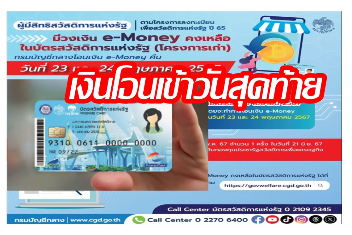 ทั้งนี้สอบถามข้อมูลเพิ่มเติมได้ที่ Call Center บัตรสวัสดิการแห่งรัฐ โทร 0-2109-2345 หรือ Call Center กรมบัญชีกลาง 0-2270-6400 และข้อมูลข่าวสารจากกรมบัญชีกลาง กระทรวงการคลัง สามารถติดตามได้ที่ เว็บไซต์ www.cgd.go.th