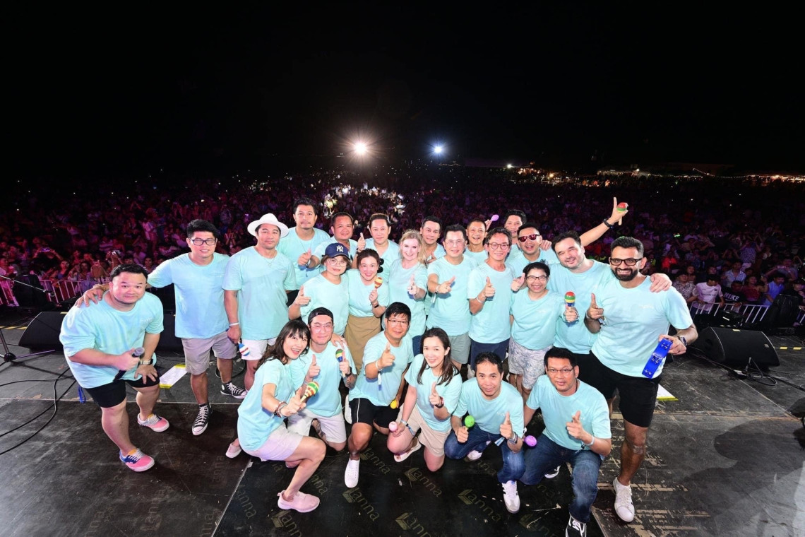 บมจ.กรุงไทย-แอกซ่า ประกันชีวิต นำโดย คุณแซลลี่ โอฮาร่า ประธานเจ้าหน้าที่บริหาร แอกซ่า ภูมิภาคเอเชียอาคเนย์ และประเทศเกาหลีใต้ (แถวที่ 2 คน 4 จากซ้าย) คุณชัยณรงค์ เอื้อสิทธิชัย ประธานเจ้าหน้าที่บริหาร ฝ่ายจัดจำหน่าย (แถวที่ 2 คนที่ 4 จากขวา) ดร.อุกฤษฎ์ ศรีดโรมนต์ ประธานเจ้าหน้าที่บริหาร ฝ่ายตัวแทน และฝ่ายฝึกอบรมและพัฒนาฝ่ายจัดหน่าย (แถวที่ 2 คนที่ 5 จากขวา) พร้อมคณะผู้บริหาร จัดคอนเสิร์ตอย่างยิ่งใหญ่ “KRUNGTHAI-AXA Agency Know You Can Music Fest 2024” ภายใต้ธีม Rhythm of the Wave ด้วยการพาตัวแทนกว่า 15,000 คน ไปรับลมทะเลพร้อมระเบิดความมันส์กับคอนเสิร์ตกันแบบสุดเหวี่ยง จาก 3 ศิลปิน ได้แก่ แสตมป์ อภิวัชร์ F.Hero และ Potato ณ Tripple Tree Beach Resort ชะอำ