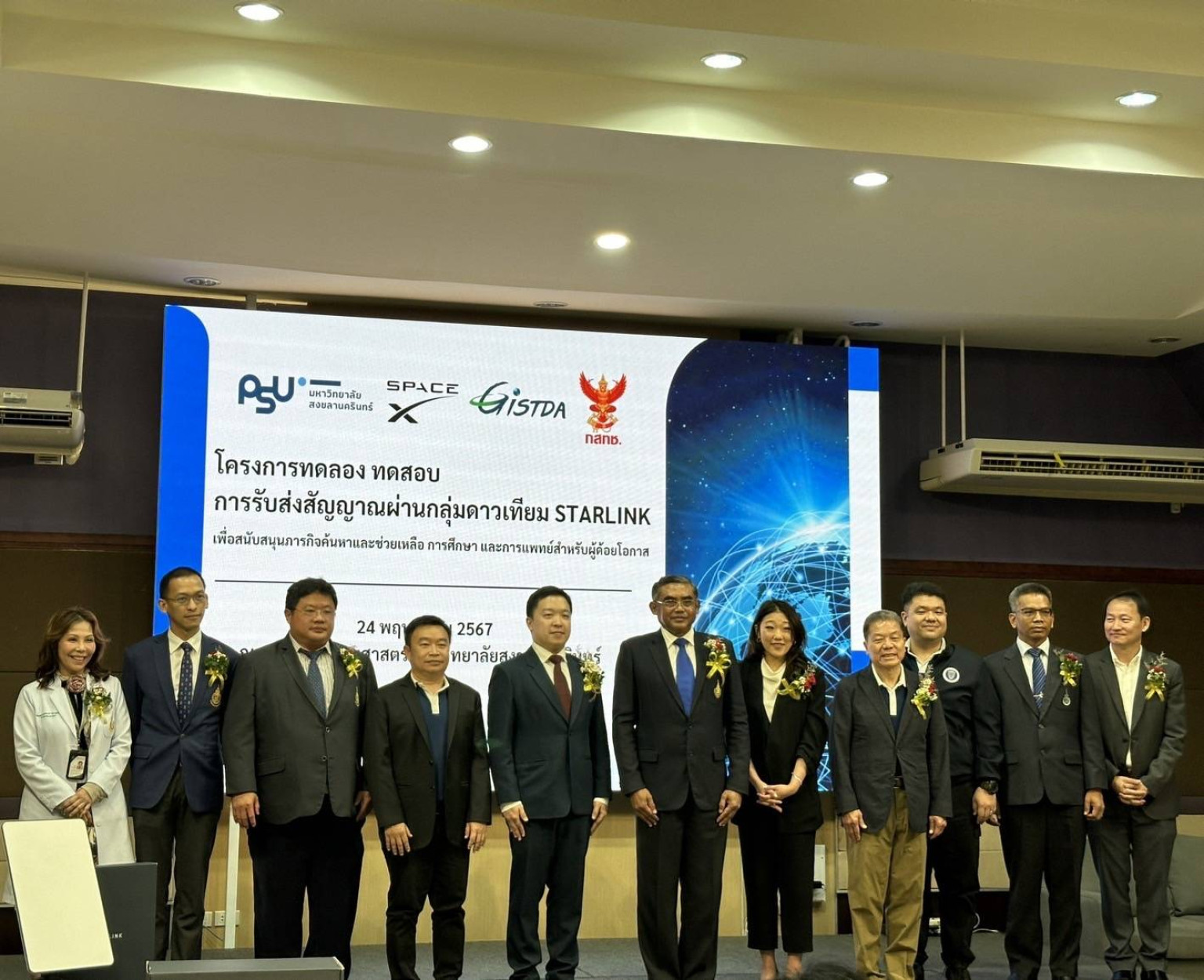 เมื่อวันที่ 24 พ.ค. 2567 ศาสตราจารย์คลินิก นพ. สรณ บุญใบชัยพฤกษ์ ประธานกรรมการกิจการกระจายเสียง กิจการโทรทัศน์ และกิจการโทรคมนาคมแห่งชาติ (ประธาน กสทช.) พร้อมด้วยนายพชร นริพทะพันธุ์ ที่ปรึกษาประจำประธาน กสทช. และ ผู้เชี่ยวชาญพิเศษ เสน่ห์ สายวงศ์ เข้ารับชมการทดลอง ทดสอบ รับส่งสัญญาณผ่านกลุ่มดาวเทียม Starlink เพื่อใช้สำหรับภารกิจการแพทย์ทางไกล ณ มหาวิทยาลัยสงขลานครินทร์ (ม.อ.) อำเภอหาดใหญ่ จังหวัดสงขลา