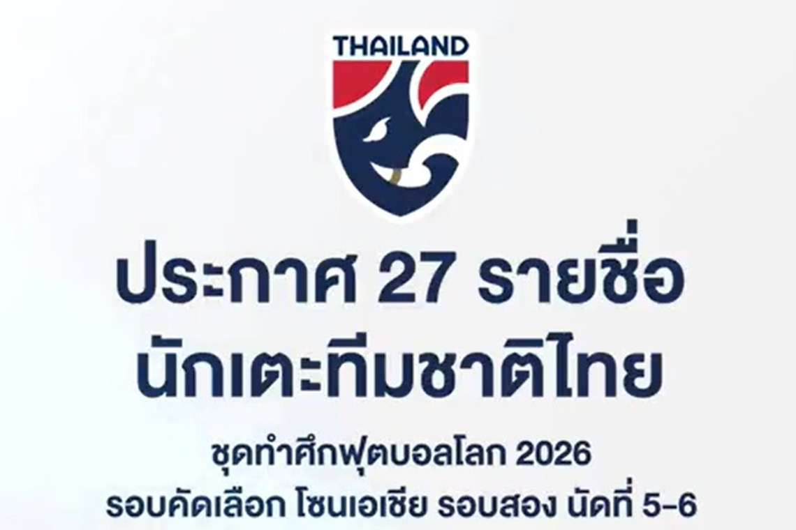 เมื่อวันที่ 26 พ.ค.67 สมาคมกีฬาฟุตบอลแห่งประเทศไทยฯ ประกาศรายชื่อ 27 นักฟุตบอลทีมชาติไทย ชุดทำการแข่งขัน ฟุตบอลโลก 2026 รอบคัดเลือก โซนเอเชีย รอบ 2 กลุ่มซี นัดที่ 5 และ 6 ที่ จะพบกับ จีน และ สิงคโปร์ ในวันที่ 6 และ 11 มิถุนายน 2567