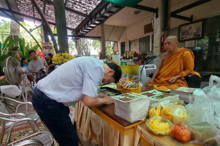 ทางด้านพระพยอมกล่าวว่า ทางวัดไม่ได้รับการประสานหรือติดต่อใดๆจากอดีตนายกทักษิณ ท่านมาโดยไม่บอกกล่าว ทราบ ล่วงหน้าตอนท่านเดินทางมาถึงเพียง 10 นาที ตอนที่ท่านอยู่เมืองนอกทราบมาว่ามีคนนำหนังสือพุทธทาสภิกขุไปมอบให้กับท่านเป็นจำนวนมากท่านเองก็เลื่อมใสศรัทธา ในปีนั้นตนเองถูกต่อว่ามากมายจากสังคมหาว่าเป็นคนหิวแสง วันนี้ที่ท่านเดินทางมา ก็มาสนทนาธรรมกับอาตมา และมอบเงินจำนวน 200,000 บาทพร้อมสิ่งของเครื่องใช้จำนวนหนึ่ง ให้กับทางวัด ทางอาตมา ก็ขออนุโมทนาสาธุในผลบุญครั้งนี้กับอดีตนายกทักษิณด้วย