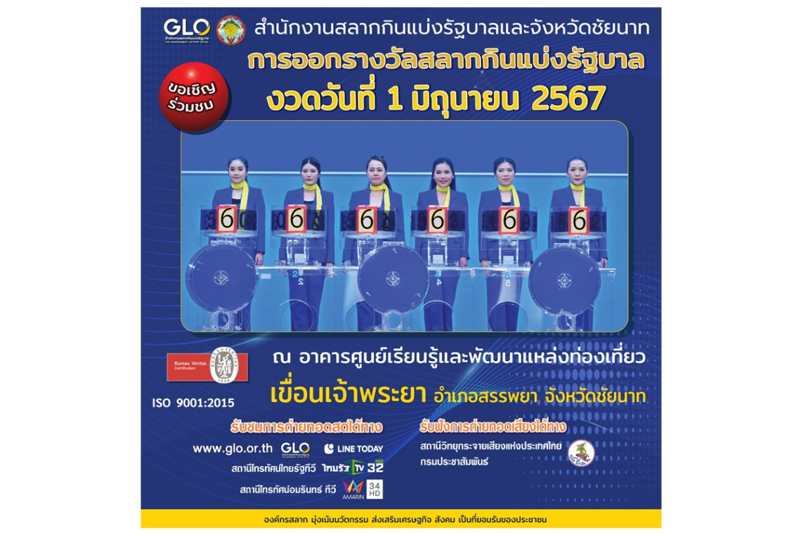 สำนักงานสลากกินแบ่งรัฐบาลพร้อมออกสลากสัญจร งวดวันที่ 1 มิถุนายน 2567 นี้ ที่จังหวัดชัยนาท